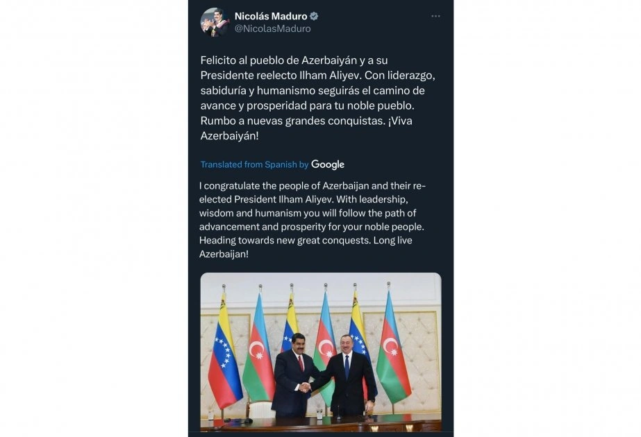 Metbuat.az xəbər verir ki, Nikolas Maduro bununla bağlı sosial şəbəkə hesabında paylaşım edib.
