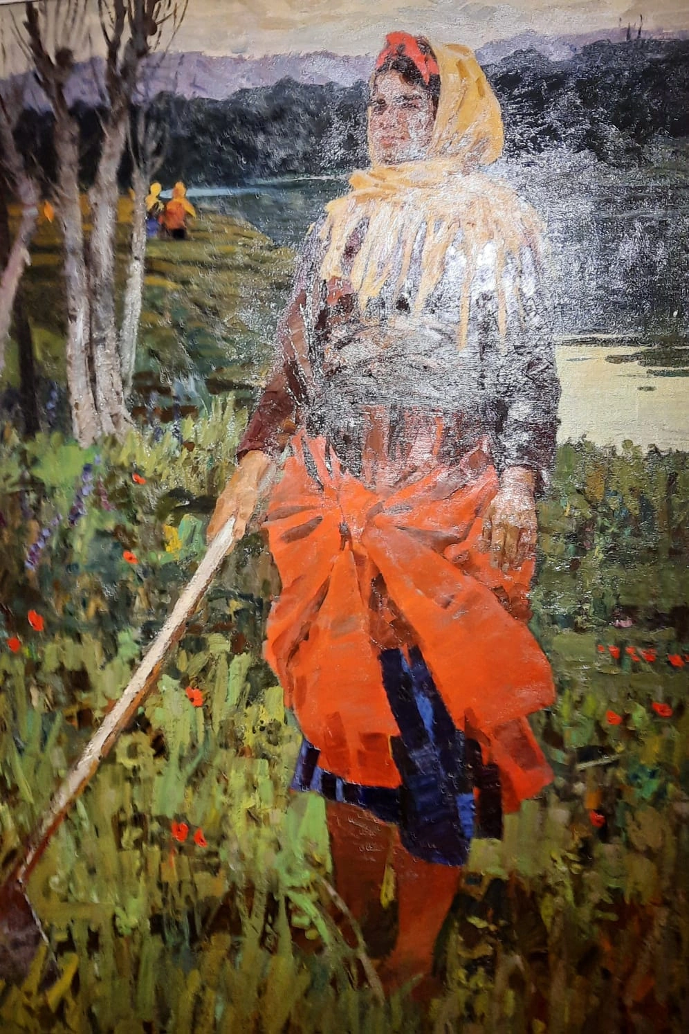 Sərgi zallarını gəzərək ekspozisiyanın ilk tablosuna yenidən qayıtmaq olar – onun xoş enerjisi dərhal hiss olunur. Üç obrazın hər biri son dərəcə canlı və xarakterlidir. Gözlərini bir qədər yummuş qadın sakitcə istirahət anından zövq alır, rəfiqəsinin baxışlarında isə dünyaya qarşı səmimi maraq duyulur. Lakin ən təsirlisi arxası tamaşaçıya tərəf oturan oğlandır – onun duruşunda və hərəkətində həyatın gözəlliyinə olan saf və sevincli inam aydın hiss edilir. Onlara baxarkən insan həmin havanı dərindən udmaq və uşaqlığın ən gözəl günlərindəki kimi yenidən xoşbəxt olmaq istəyir.