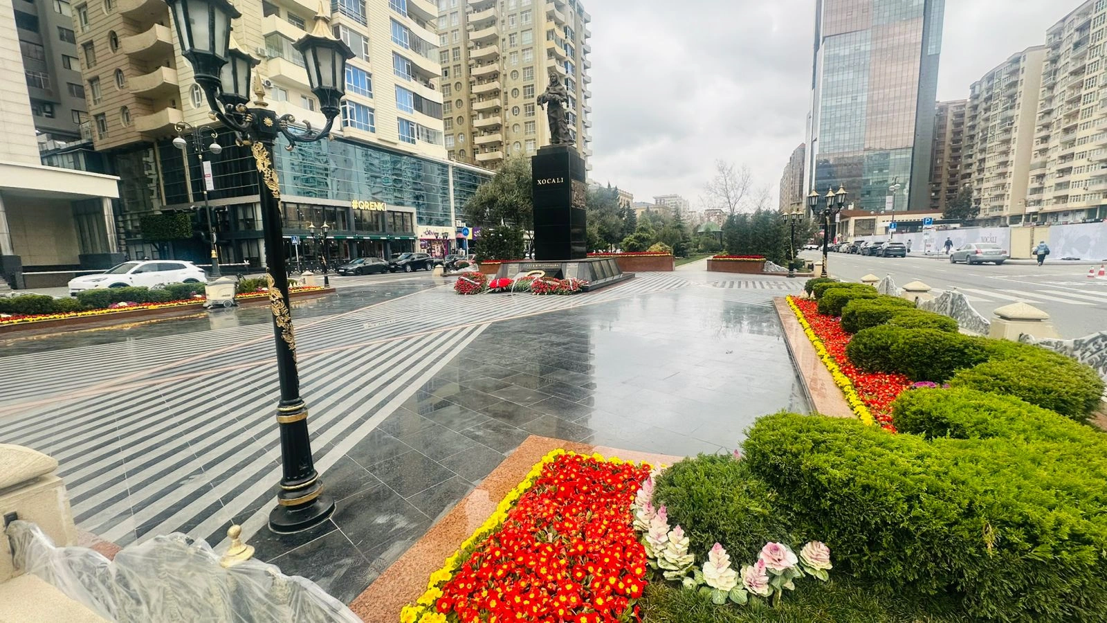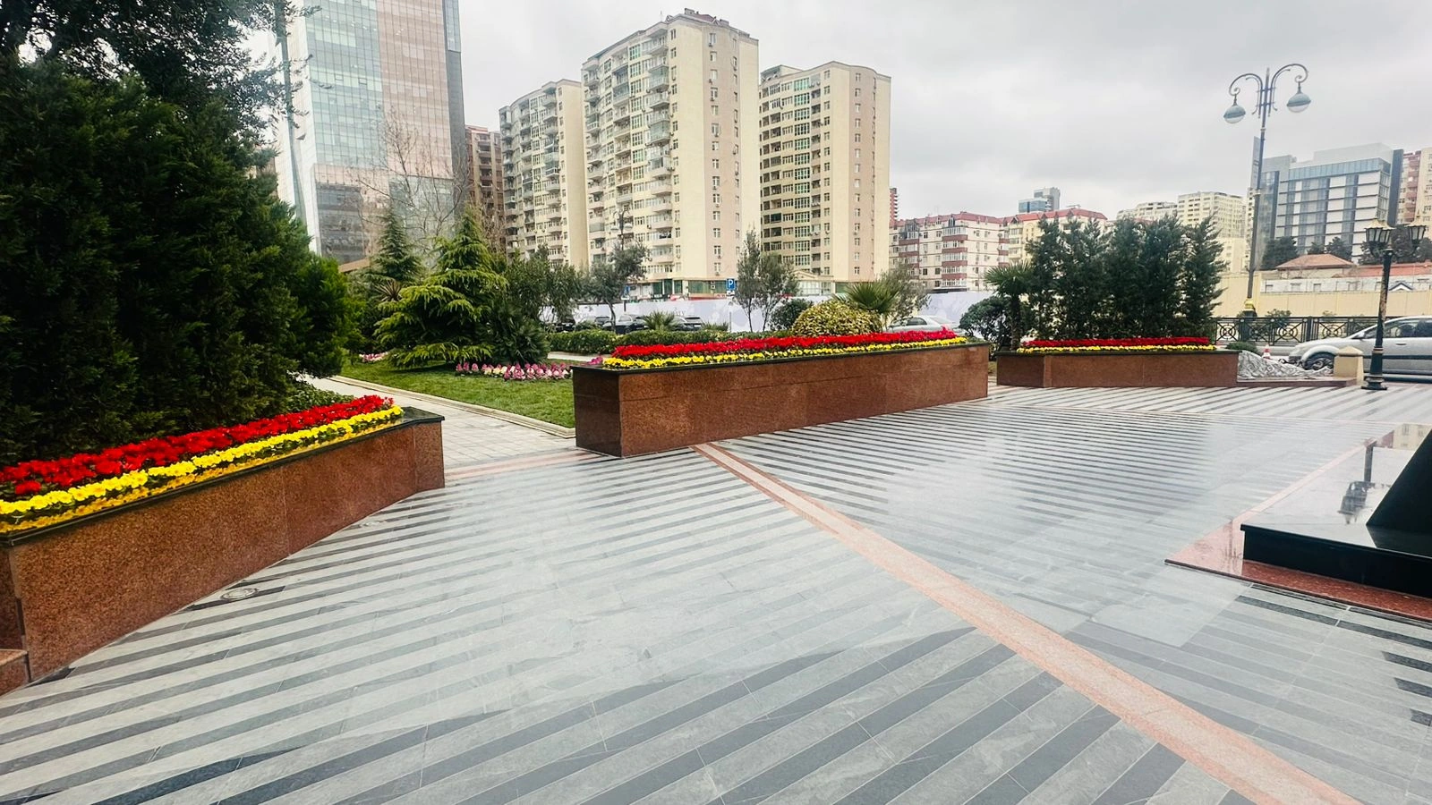 Bundan əlavə, Yusif Səfərov küçəsi istiqamətində də abadlıq işləri aparılıb, gül kolları əkilib və rəngarəng çiçəklərlə bəzədilmiş dekorativ dibçəklər yerləşdirilib. Xocalı prospekti boyunca binaların fasadlarına və işıq dirəklərinə Xocalı Soyqırımı haqqında məlumatlar, “Xocalıya ədalət!” plakat və banerləri vurulub.