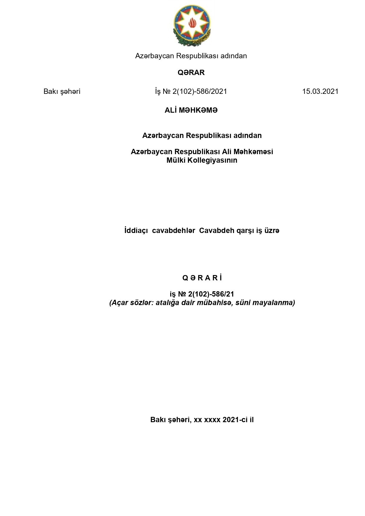 Azərbaycanda süni mayalanma yolu ilə əkiz övladlara sahib olmuş bir ailənin münaqişəsi məhkəməyədək uzanıb. Modern.az xəbər verir ki, film kimi hadisə barədə tanınmış hüquqşünas Əkrəm Həsənov məlumat yayıb. İşin təfərrüatları Ali Məhkəmənin Mülki Kollegiyasının 2(102)-586/2021 saylı iş üzrə 15 mart 2021-ci il tarixli Qərarında əks olunub. Belə ki, 2005-ci ildə nikaha girən ər-arvad uzun müddət övlad sahibi ola bilmədiklərinə görə süni mayalanma yoluna əl atıblar. 2010-cu ildə süni mayalanma nəticəsində ailədə əkiz övladlar dünyaya gəlib. Süni mayalanma üçün tələb olunan bütün xərcləri ər ödəyib. O, dünyaya gələn əkiz uşaqlara doğma övladları kimi nəvaziş və qayğı göstərib. Lakin ailənin xoşbəxtliyi uzun sürməyib. 7 ildən sonra – 2017-ci ildə ər-arvad arasında düşən münaqişə onların boşanması ilə nəticələnib. Boşanma ərəfəsində arvad kişiyə deyib ki, “sən heç uşaqların bioloji atası da deyilsən”. Bundan sonra ana uşaqları da götürərək ata evinə gedib. Arvadının sözlərindən şoka düşən ər “Bioloji təbabət” Klinikasına müraciət edərək tibbi yoxlamadan keçib. Klinikada məlum olub ki, doğrudan da onun heç vaxt övladı ola bilməz. Məhkəmə sənədlərindən belə məlum olur ki, sən demə, kişi tam sonsuz imiş, yəni ondan götürülən hüceyrə süni mayalanma yolu ilə embrion yaratmağa yararsız olub. Tibbi yoxlamalar zamanı bunu bilən həkim (iddiaya görə, həmin həkim Türkiyə əsilli Öndər Tulumbacıdır) arvada başqa kişinin donorluğunu təklif edib, o da razılaşıb. Amma bunu ərdən gizlədiblər. Boşanma üçün iddia ərizəsi yazan ər Nəsimi Rayon Məhkəməsinə müraciət edib. O bildirib ki, süni mayalanma zamanı başqa kişinin donor olmasına razılıq verməyib, yəni arvadı bu işi ondan gizlin şəkildə həkimlə əlbir olaraq tutub. İddiaçı ər məhkəmədən özünün atalığının ləğv olunmasını tələb edib. Lakin Nəsimi Rayon Məhkəməsi iddiaçı ərin tələbini təmin etməyib, atalıq hüququnu qüvvədə saxlayıb və ona aliment kəsib.