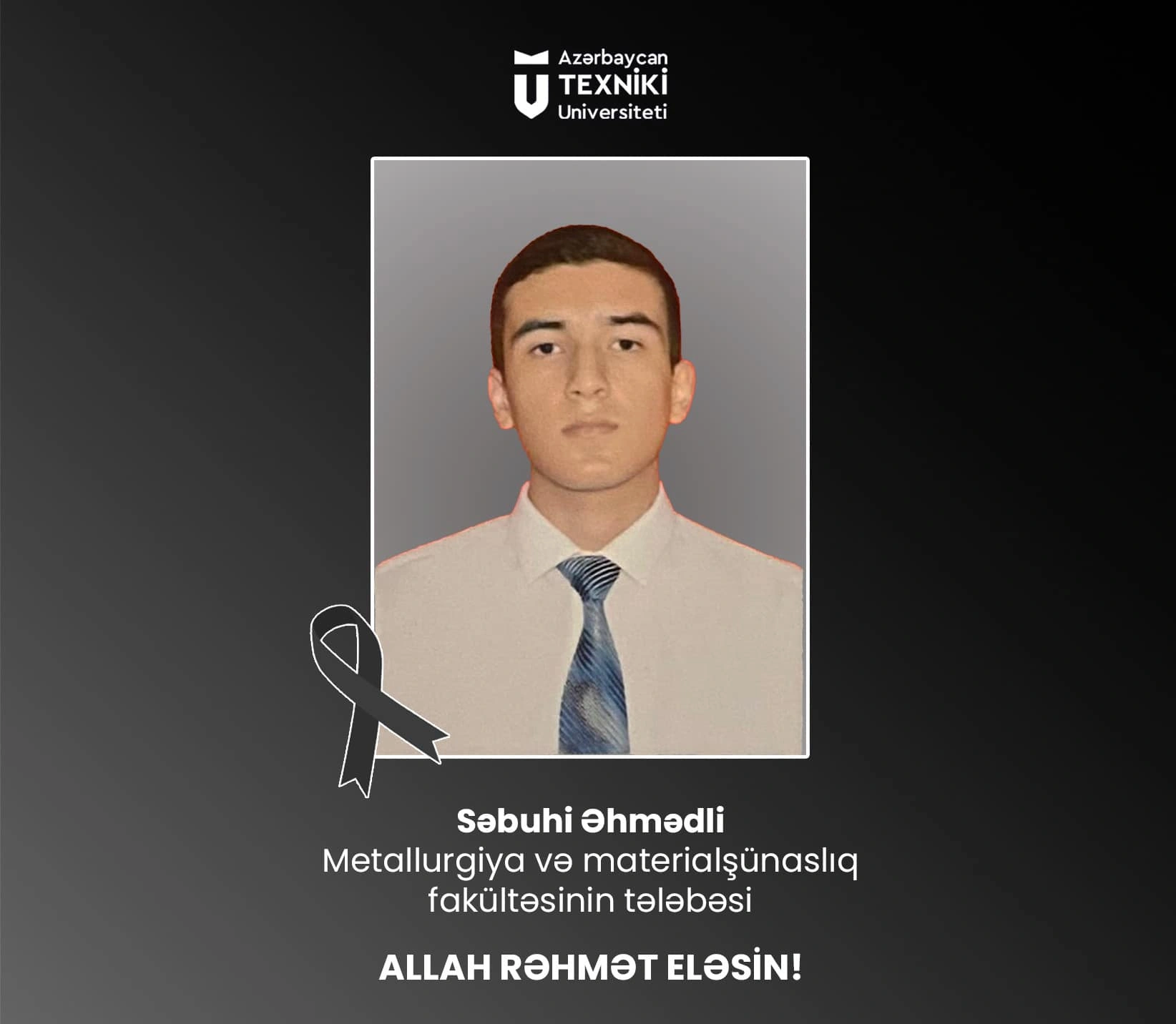 Paylaş Facebook Twitter LinkedIn Pinterest Bakıda tələbə dünyasını dəyişib. Məlumata görə, Metallurgiya və materialşünaslıq fakültəsinin II kurs tələbəsi Səbuhi Əhmədli ürək tutmasından vəfat edib.