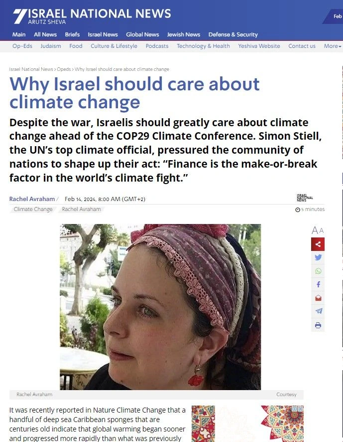 “İsrailin iqlim dəyişikliyi ilə mübarizə aparmağa yönəlmiş çoxsaylı yeniliklərinə baxmayaraq, COP29 konfransının adıçəkilən ölkədə deyil, ekoloji istiqamətdə əhəmiyyətli irəliləyişləri ilə fəxr edən neftlə zəngin ölkədə - Azərbaycanda keçirilməsi təsadüfi deyil”.