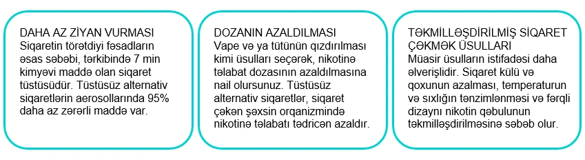 Hal-hazırda kütləvi meyillilik halları müşahidə olunur: siqaret çəkən şəxslər ənənəvi siqaret çəkmək üsullarını daha çox alternativ üsullar ilə yəni, vape, tütünün qızdırılması, tək istifadəlik siqaretlər və s, ilə əvəz edirlər. Bəs öz vərdişlərini əvəzləməyə onları nə vadar edir?