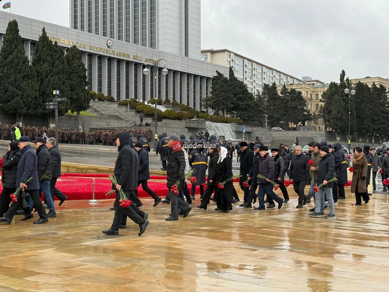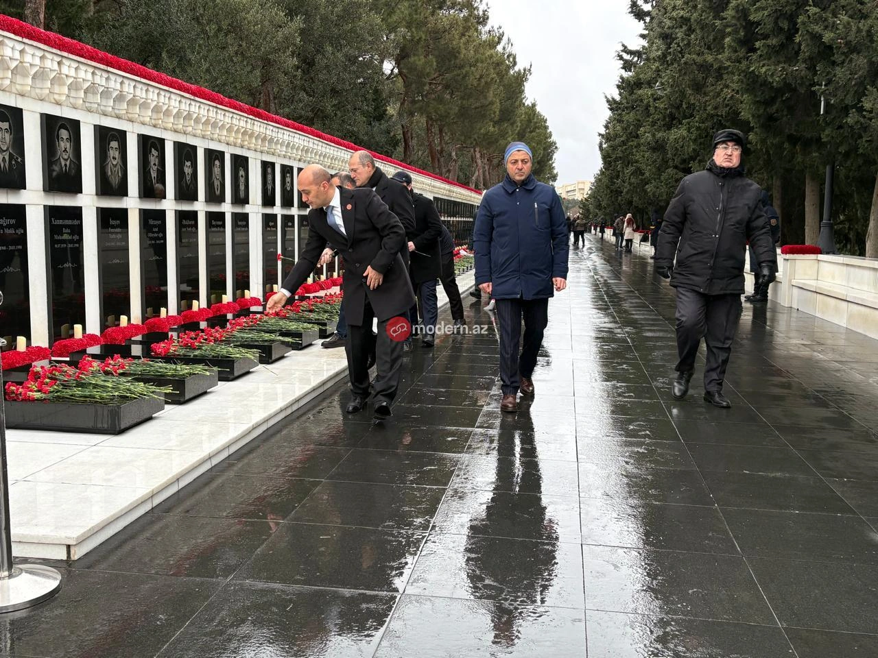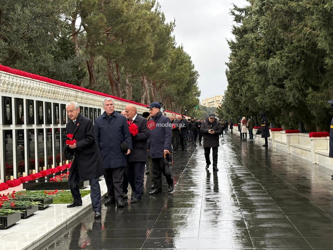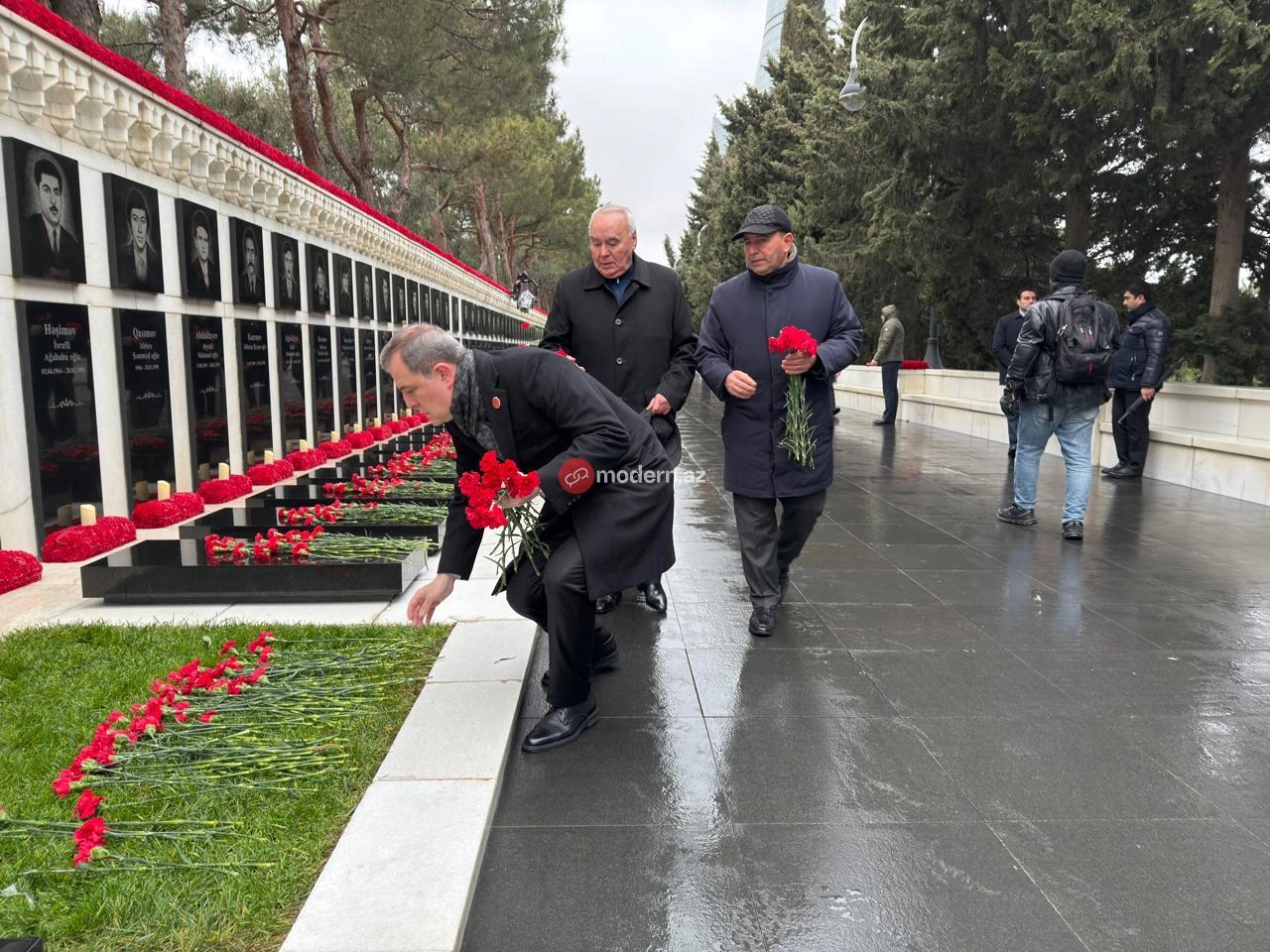 Modern.az verir ki, Əli Əsədov və Sahibə Qafarova faciə qurbanlarını yad edib, şəhidlərin məzarları üstünə qərənfillər düzüblər.