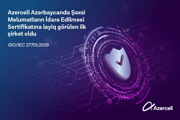 ISO/IEC 27701:2019 sertifikatı Azercell-in şəxsi məlumatların məxfiliyinin idarə olunmasında beynəlxalq standartlara əsaslanan sistemli yanaşma tətbiq etdiyini, həmçinin müştəri məlumatlarının emalında şəffaf, etibarlı və effektiv nəzarət mexanizmlərindən istifadə etdiyini bir daha təsdiqləyib. Sertifikatlaşdırma prosesi TÜV Austria tərəfindən aparılan müstəqil audit əsasında həyata keçirilib.