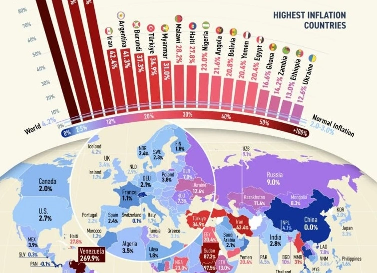 Yüksək inflyasiya göstəricilərinə malik top 5-lik:
