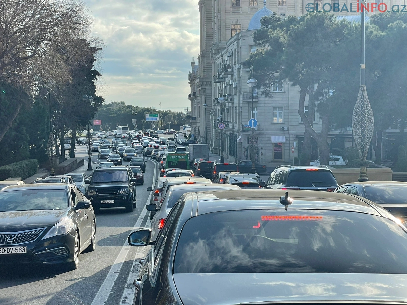 Bakının bir sıra yollarında nəqliyyatın sıxlığı müşahidə olunur.