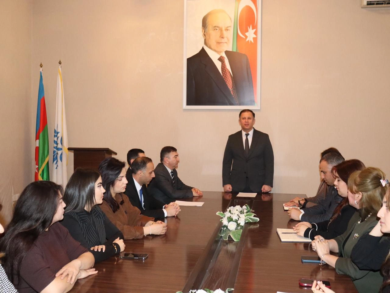 Modern.az xəbər verir ki, öncə müasir müstəqil Azərbaycan dövlətinin qurucusu, Ulu Öndər Heydər Əliyevin və torpaqlarımızın azadlığı uğrunda şəhidlik zirvəsinə ucalan Vətən oğullarının əziz xatirəsi bir dəqiqəlik sükutla yad edilib.