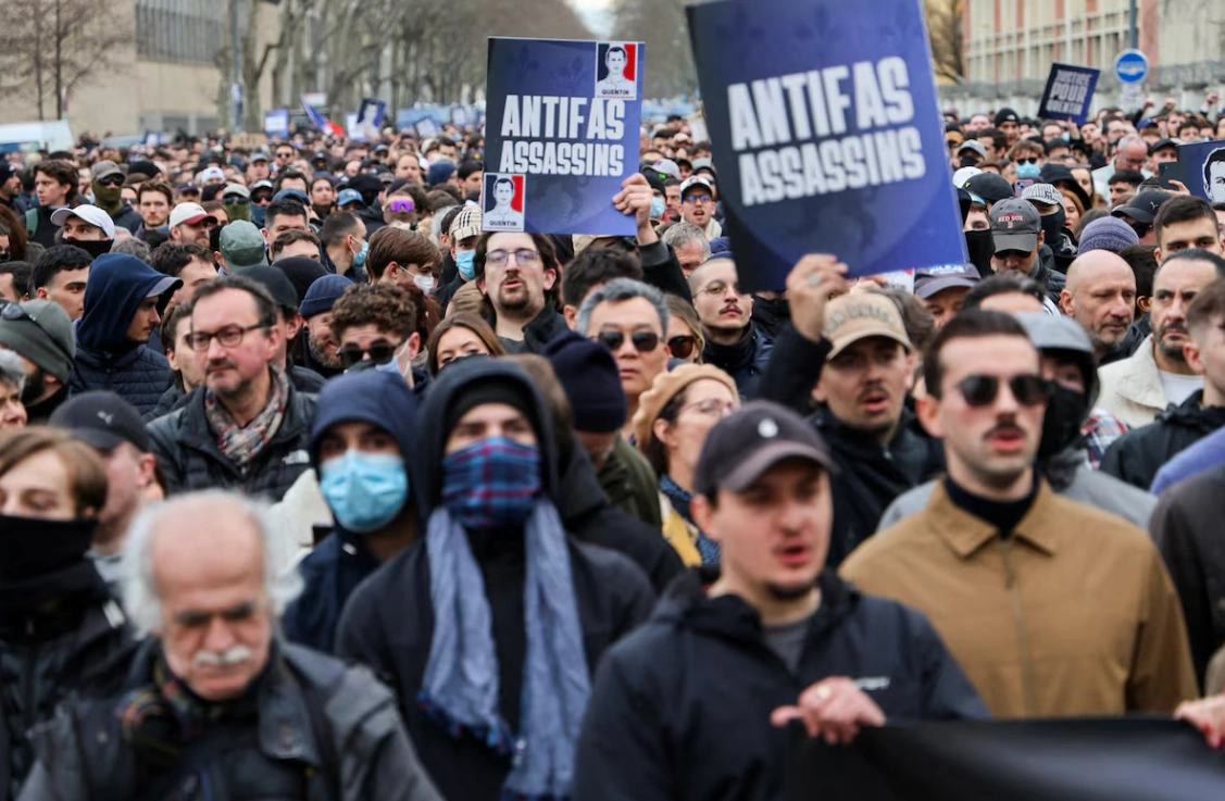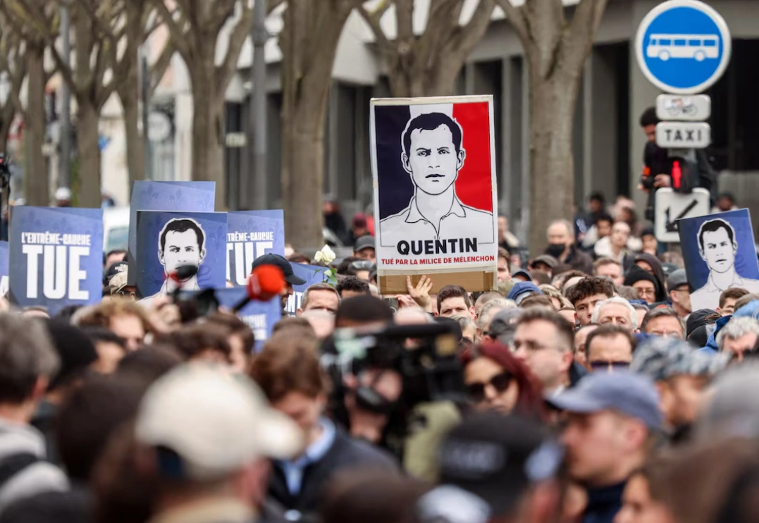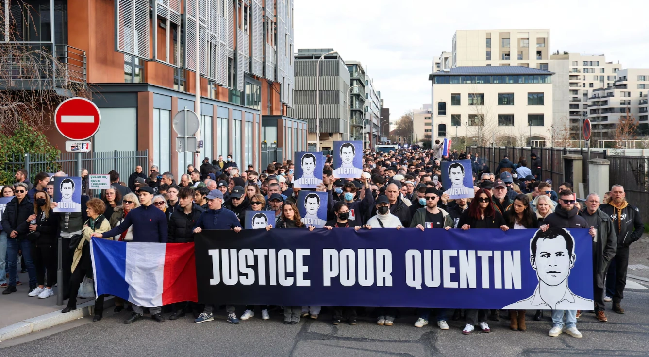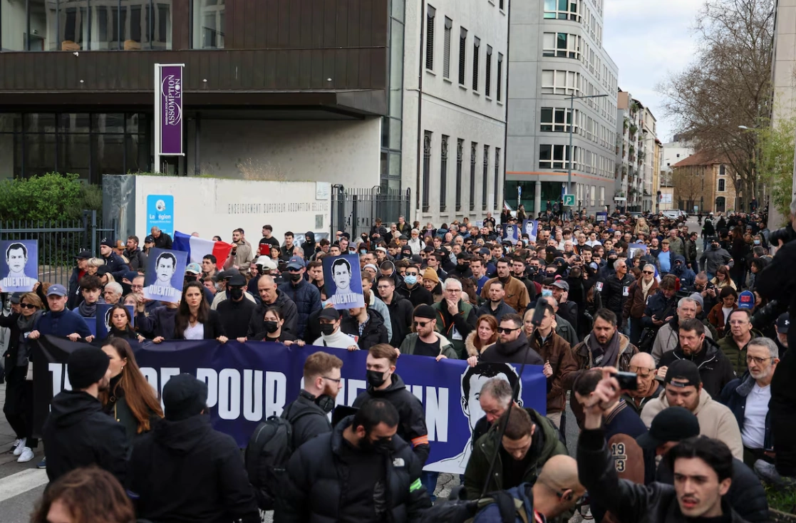 Fransanın Lion şəhərində ötən həftə sağçı fəal Kventin Derankın öldürülməsindən sonra minlərlə insan yürüş keçirib.
