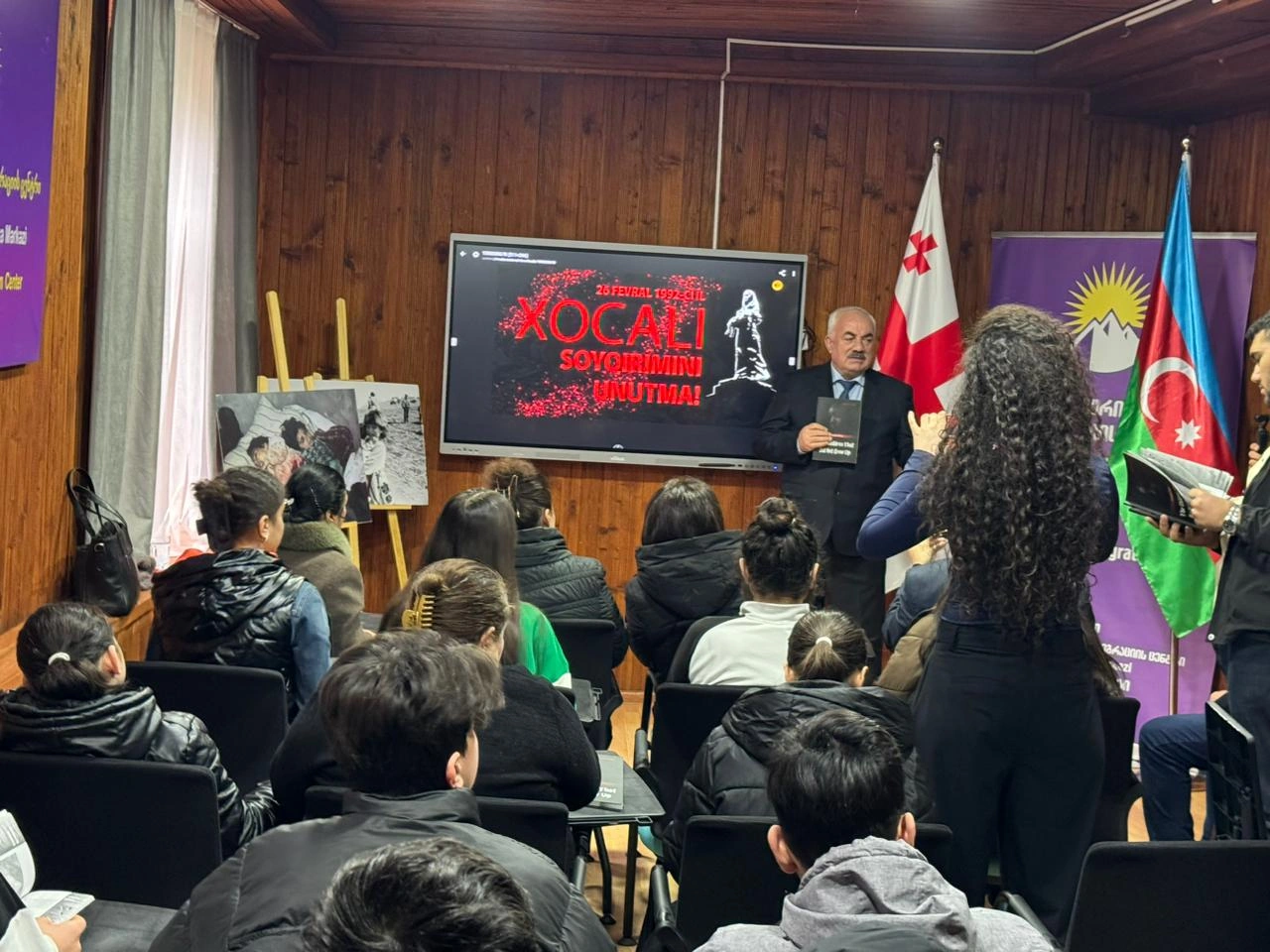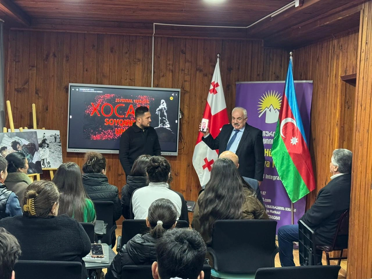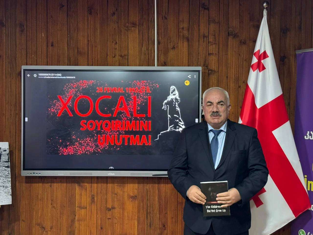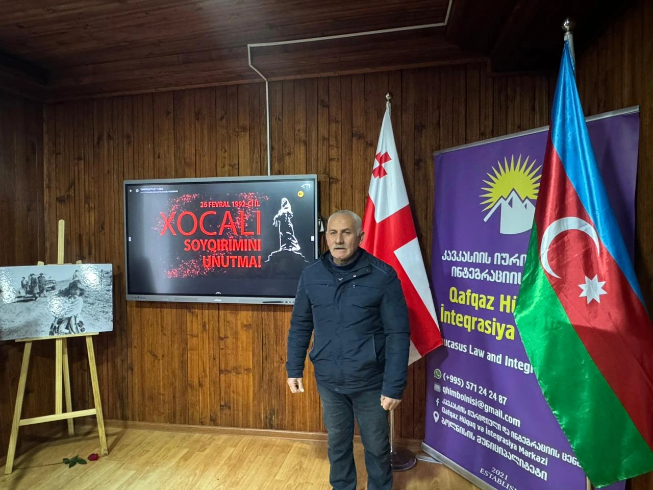 Sonra mərkəzin direktoru Rezo Həsənov çıxış edərək Azərbaycan xalqının başına gətirilən müsibətlərdən, Xocalı faciəsinin səbəb və acı nəticələrindən danışıb.