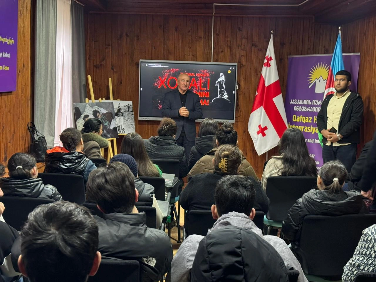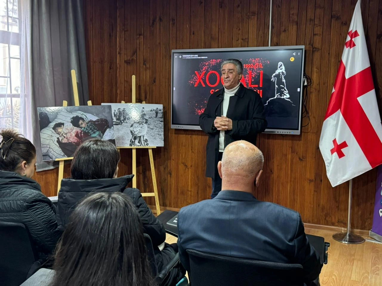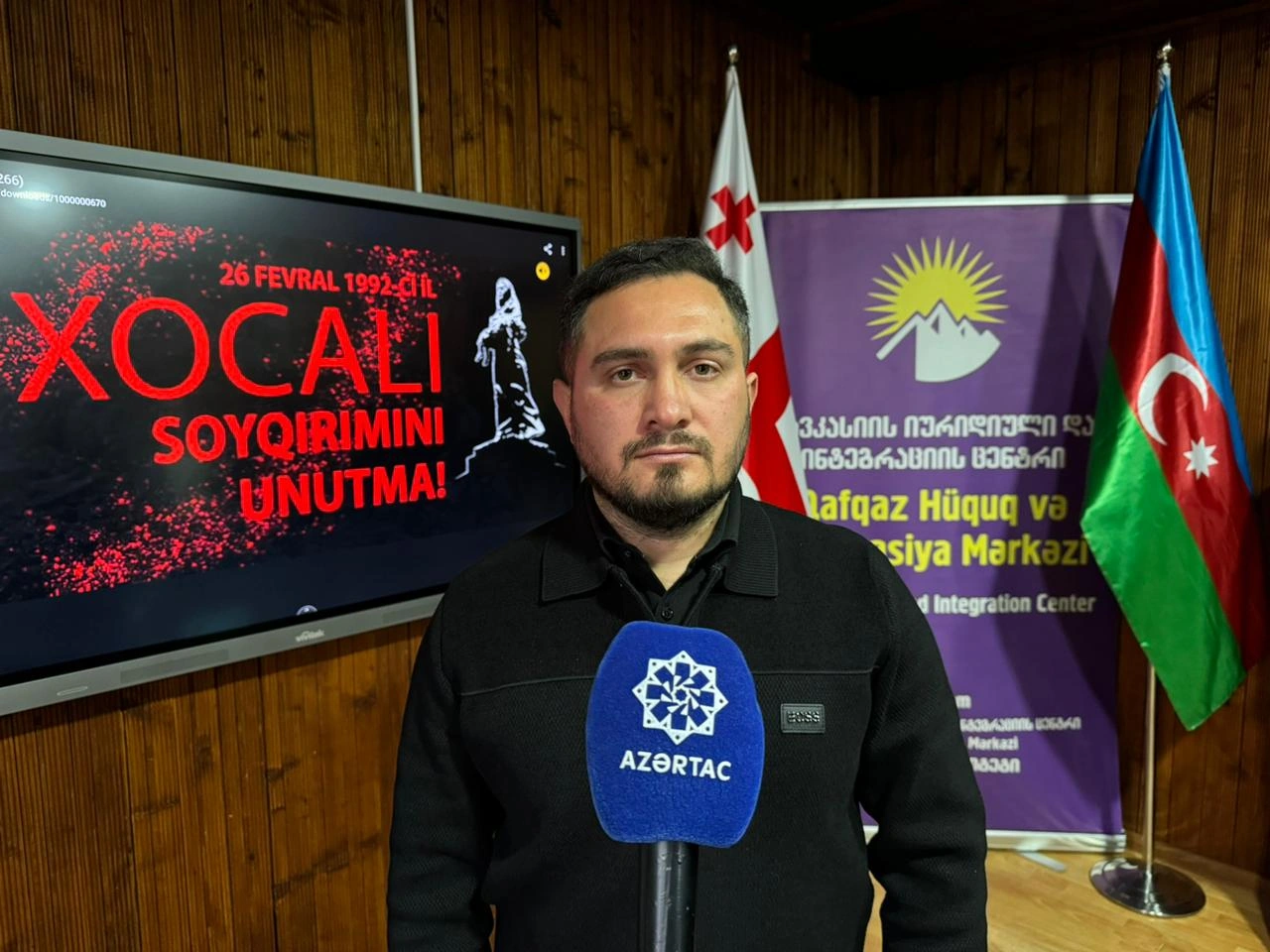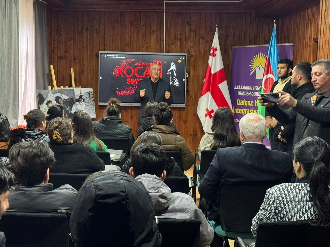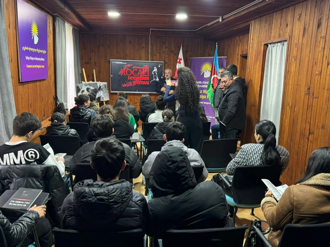 Sonra mərkəzin direktoru Rezo Həsənov çıxış edərək Azərbaycan xalqının başına gətirilən müsibətlərdən, Xocalı faciəsinin səbəb və acı nəticələrindən danışıb.